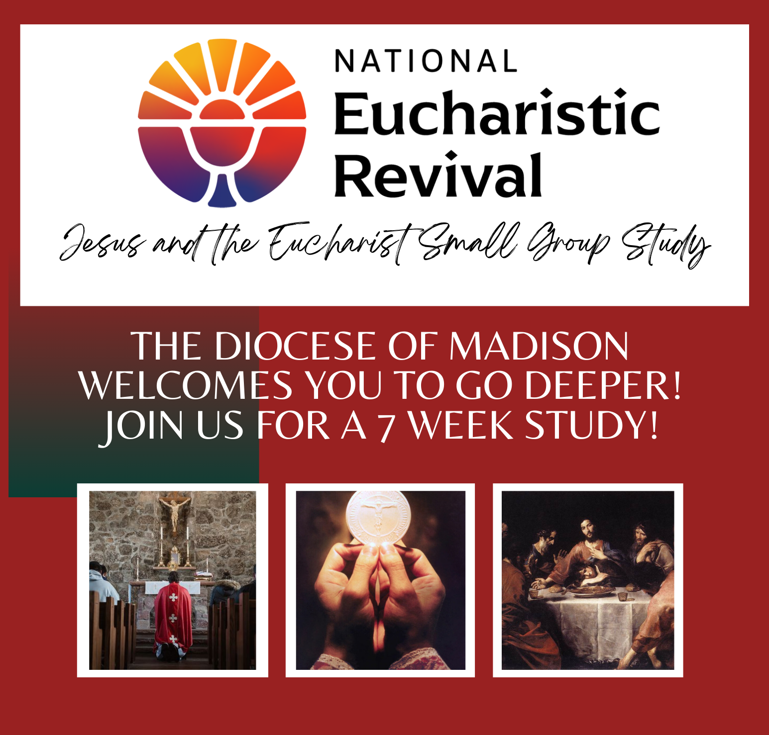 As part of the National Eucharistic Revival, the Diocese of Madison will be building small groups in each pastorate to follow the USCCB study, "Jesus and the Eucharist".