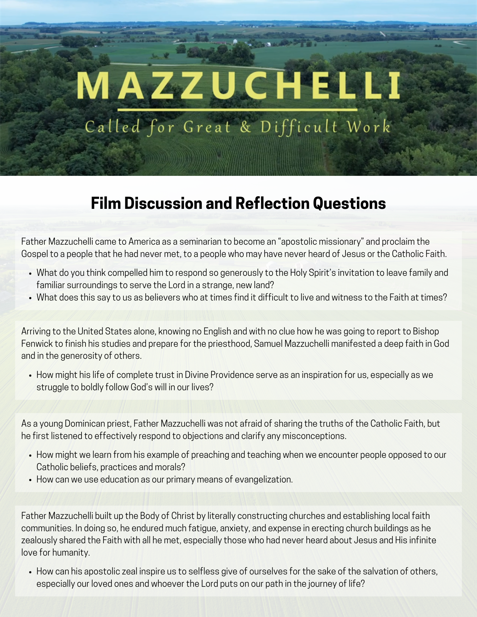 Start a discussion at your parish or enter into deeper personal reflection on the life and example of Fr. Mazzuchelli with the attached discussion and reflection questions!