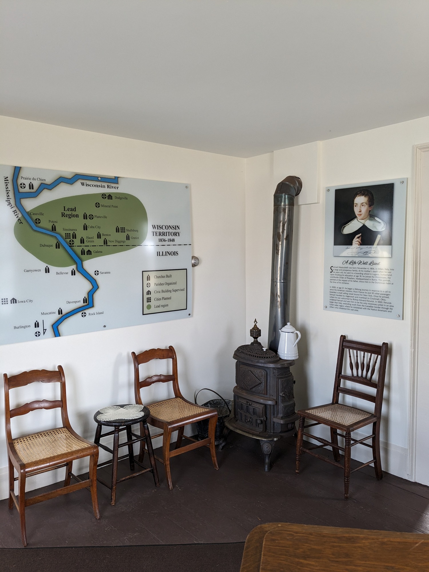 Benton, Wisconsin is where Fr. Mazzuchelli lived for the last 15 years of his life, in a small rectory that he built himself, and it is where he is buried. Fr. Mazzuchelli's rectory can be toured by request in the warmer months and is sometimes open for special events.