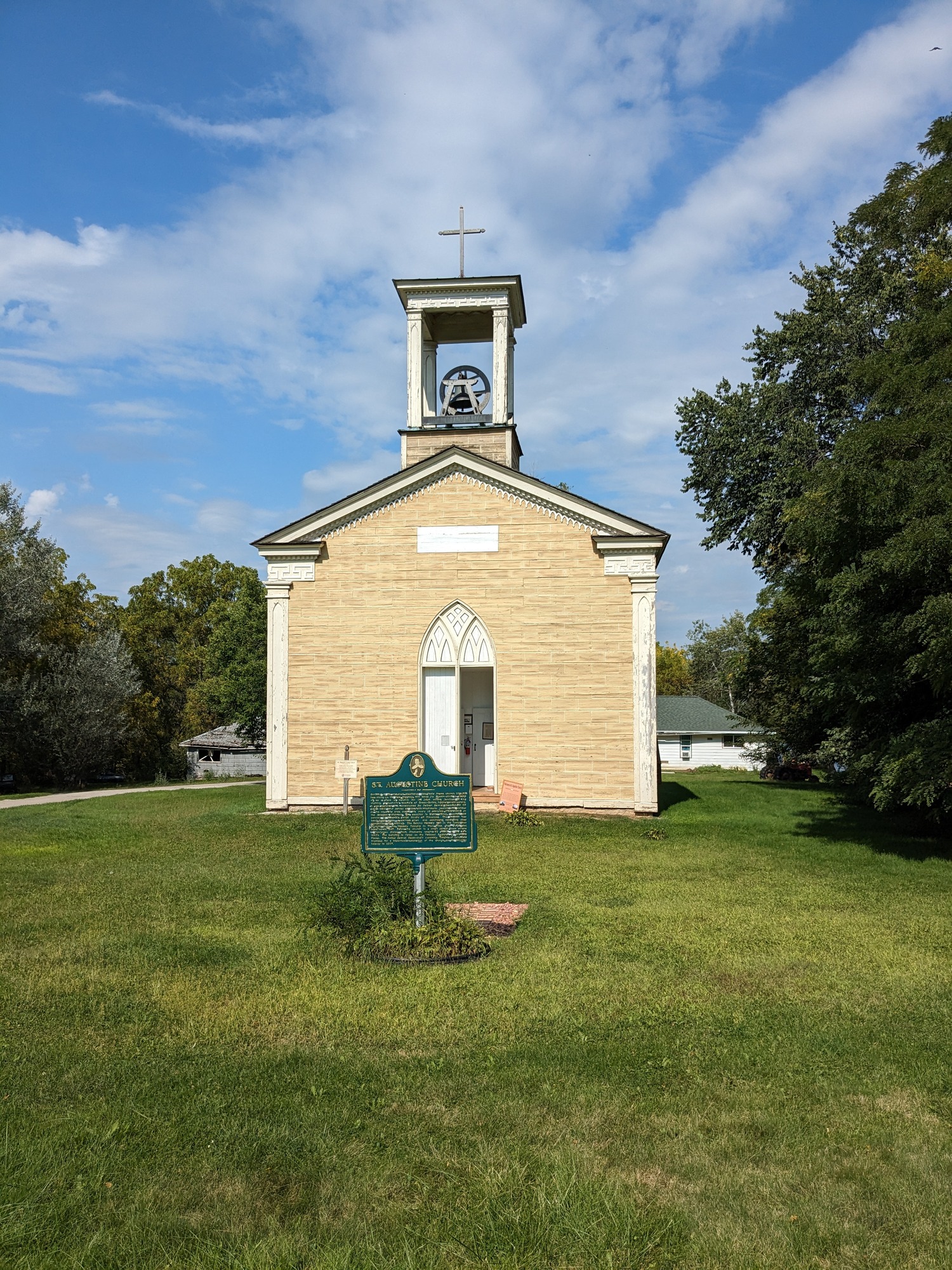 St. Augustine in New Diggings is no longer a functioning parish and is on the National Register of Historic Places. It is the only church built by Fr. Mazzuchelli that has not been altered or expanded in any way; it is a true Fr. Mazzuchelli original, and the Knights of Columbus have been maintaining and restoring it so that it looks exactly as the pioneer priest built it in the 1840s. It is open for tours on Sunday afternoons from the last weekend of May to the first weekend of October.
